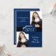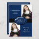 Diese einfache, aber schicke Einladung ist eine gute Möglichkeit, Ihre (Kind-)Abschlussfeier anzukündigen. Ob Sie (oder Ihr Kind) von der Schule oder der Uni abgeschlossen werden, diese Einladungen sind der perfekte Weg zum Ausgehen! Das Design weist ein viereckiges Design auf der Vorderseite auf. Zwei der Rechteck-Bereiche sind dunkelblau, und die anderen beiden sind Bereiche, in denen Sie Fotos des Absolventen hinzufügen können. Fügen Sie zwei oder zwei verschiedene Foto hinzu. Sie haben die Wahl! Innerhalb des blauen Rechtecks ist Text in weißem extravaganten Schriftart. Der gesamte Text kann an Ihre Bedürfnisse angepasst werden. Über der Mitte der Einladung befindet sich ein schwarzes Band mit einem blauen, glänzenden Knopfbereich. Fügen Sie diesem Bereich das Abschluss Jahr hinzu! Die Rückseite des Blue Double Foto Abschluss Invitation ist massiv dunkelblau mit weißem Trimm. Der Text befindet sich im selben extravaganten weißen Schriftart. Der Text ist vollständig anpassbar! Diese Einladungen sind besonders für die Absolventen geeignet, deren Highschool- oder Uni-Farben blau, schwarz oder blau und weiß sind. Diese Einladung ist auch in anderen Farben erhältlich!