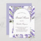 Ein stilvoller weißer Hintergrund. Dekoriert mit Lavendelblumenrahmen mit Bienen. Personalisieren und fügen Sie einen Namen und Details.