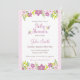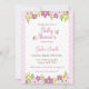 Romantische Babydusche Einladung in einem rosa Farbschema mit gestreiftem Hintergrund und Blume-Abbildung. Dieses Design ist perfekt für ein Baby Duschfest für ein kleines Mädchen.