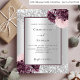Imitat silber aussehender Hintergrund mit bordeauxroten und rosafarbenen Blumen, Blume und Imitate silberner Glitzer, Glitzern. Personalisieren und fügen Sie Ihre Namen und Hochzeitsdetails. Schwarze Buchstaben.