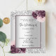 Imitat silber aussehender Hintergrund mit bordeauxroten und rosafarbenen Blumen, Blume und Imitaten silberne Konfetti. Personalisieren und fügen Sie Ihre Namen und Hochzeitsdetails. Schwarze Buchstaben.