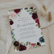 Unsere Interaktion mit Radiant Bloom rundet Ihre Verlobung-Fest-Details mit einem Rahmen von Aquarellfarben-Blume in bordeauxroter Marsala, Rosa und Marineblau, mit grünen botanischen Blättern und Eukalyptus-Blätter auf einem reichhaltigen marineblauen Hintergrund ab.