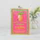 Tropical Bridal Shower Einladung with pretty pineapple and hibiscus flower Wir haben Beautiful hot pink, lime green and gold foil background with string lights. This luau soiree bridal shower einladung is easily customized for your event by simply adding your details in the font and wording of your choice. This is a printed design with no real foil, glitter usw.