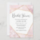 Schöne Bridal Dusche Einladung mit geometrischen Marmormustern in Rosa und Gold mit einem rosa Hintergrund. © Mini Moi Prints