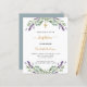Weiß mit Lavendel-Blume und Eukalyptusgrün dekoriert. Personalisieren und einen Namen und Zeremonie Details. Schwarze und goldfarbene Buchstaben.