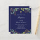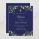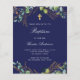 Marineblau mit Eukalyptusgrün und goldenen Blätter. Personalisieren und den Namen und die Zeremonie Details des Kindes. Zurück: marineblau Hintergrund