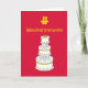 Ein mehrstufiger Hochzeitskuchen, der in goldenen Blume und Wirbel verziert ist. Der Kuchen ist vor einem tiefen roten Hintergrund und zusammen mit dem chinesischen Symbol für doppeltes Glück sagt "Einladung Hochzeit".