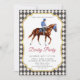 Diese Einladung mit einer anspruchsvollen Modeillustration einer Frau, die einen klassischen schwarzen Hut mit breiter Krempe trägt, ist perfekt für Derby-Partys, Ladies-Day-Feiern, Gartenveranstaltungen, Pferderennen-inspirierte Zusammenkünfte und hochkarätige gesellschaftliche Anlässe.