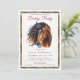 Diese Einladung mit einer anspruchsvollen Modeillustration einer Frau, die einen klassischen schwarzen Hut mit breiter Krempe trägt, ist perfekt für Derby-Partys, Ladies' Day-Feiern, Gartenveranstaltungen, Pferderennen-inspirierte Zusammenkünfte und hochkarätige gesellschaftliche Anlässe.