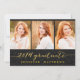 Handgeschriebene Collage Fotokarte, die Ihre Familie und Freunde zu der Abschlussfeier Ihrer Tochter einlädt. Simple Collage Glitzer Graduation Party Einladung für 2014. Design von Elke Clarke © Besuchen Sie unseren Shop www.zazzle.com/monogramgallery* für weitere Designs und Stile. Ein einfaches Schriftart-Texteüberlagern aus Goldfolie mit handgeschriebenem Drehbuch auf einem schwarzen Glitzer-Hintergrund (gedruckter Foto-Effekt) mit den Worten "2014 Graduate" mit einem 3-Foto-Collage-Design. Ersetzen Sie Beispielprogramme durch eigene Foto. Schwarz und Gold.