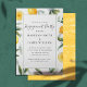 Die elegante Yellow Lemons Engagement Party Invitation besticht durch einen schönen Zitronenbaum, der mit üppig grünen Blätter und weißen Blume geschmückt ist. Seine Einfachheit und Eleganz machen es zu einer perfekten Wahl, um die Gäste zu einer Hochzeitsfeier einzuladen. Das zauberhafte gelbe Thema strahlt eine reizvolle sommerliche Atmosphäre aus und ist somit die ideale Wahl für ein sonniges Hochzeitsfest im Sommer.