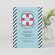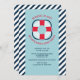 Eine Einladung zum Thema Wassersport mit marineblau-weißem Streifen-Hintergrund, hellblauem Overlay-Panel und rot-weiß-blau-blau-farbenem Rettungsschirm. Ideal für Geburtstagsfeiern zum Thema Wassersport, Party und Babyduschen. (<a href='http://www.freepik.com/free-vector/birthday-card-with-nautical-elements_886557.htm'>Designed by Freepik</a>). <br/>()<br/>Die Karte lässt sich einfach mit Ihrem Text, Schriftart, Schriftart, Papierform und der Auswahl von sechs Papiertypen anpassen.<br/>() Nicht genau das, was Sie suchen? Alle unsere Produkte können auf Ihre Bedürfnisse zugeschnitten werden, ohne Aufpreis.<br/>() Kontaktieren Sie uns einfach unter heartfelthelper@gmail.com.<br/>() Koordinierung der Produkte verfügbar: frag uns einfach!