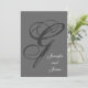 Extravagantes Script Gray auf Gray Hochzeit Einladung mit Monogram Initial "G". Design von Elke Clarke ©2008. Passen Sie Ihre Monogramme, Namen und Hochzeitsfarben an. Fügen Sie alle Ihre Hochzeitsinformationen auf der Rückseite der Karte mit Zazzle's einfach zu bedienenden Menüaufforderungen. Kommt mit weißem Umschlag. Match Zubehör im Lager erhältlich.
