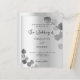 Eine moderne, elegante und minimalistische Einladung zur Hochzeit. Imitate silber metallische Hintergrund mit Eukalyptus, Sprigs dekoriert. Personalisieren und fügen Sie Ihre Namen und Hochzeitsdetails. Schwarze Buchstaben.