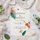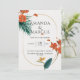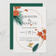 Es handelt sich um eine stilvolle tropische Blume und ein goldenes Rahmen-Design mit eleganter Typografie. Es ist ein ausgeklügeltes und elegantes Design, mit dem Sie Texte, Bilder und Schriftart bearbeiten können. Dieses Design ist ausgezeichnet für jeden, der tropische Hochzeiten mag.