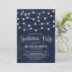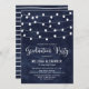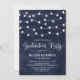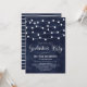 Whimsikale und elegante Graduation Party Einladung mit weißen Hängeleuchten mit Mitternacht blauem Aquarell. Diese rustikale Abschluss-Einladung ist ideal für Outdoor-Abschlussfeiern. Weitere Veranstaltungen und andere Hintergründe stehen zur Verfügung.