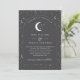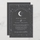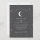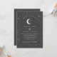 Eine himmlische Hochzeitseinladung mit Sternenmoon und kohlegrauem Hintergrund, weißer Text mit Elementen. Passen Sie die Farbe des Sternmusters, des Hintergrunds, des Bogenfüllens und des Mondelements an!