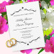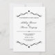 Weiße elegante Einladungen mit Skripttext für Braut- und Bräutigamen und dekorative Akzente oben und unten