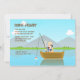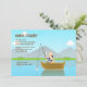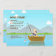Für den Fisch-Fans, eine Geburtstagseinladung, die er in die Liebe geht! Auf der Karte befindet sich ein Mann mit Angeln in einem Holzboot und einer Berglandschaft.