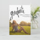 Ein einfaches und schönes modernes Design, das das Foto Ihres Absolventen auf der Vorderseite mit allen Party- oder Ankündigungsdetails auf der Rückseite zeigt. Elegantes schwarzes Typografie-Design mit feminininem handgeschriebenem Look. Lässige, zeitgenössische und schöne Art, die Feier des Abschlusses Ihrer Tochter zu unterstreichen.