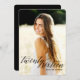 Ein einfaches und schönes modernes Design, das das Foto Ihres Absolventen auf der Vorderseite mit allen Party- oder Ankündigungsdetails auf der Rückseite zeigt. Elegante, moderne Typografie in einem Pinselstrich mit einem femininen Flair in vertikaler Form unterstreicht Ihr Abschluss von sechzehn Jahren. Eine zeitlose, klassische und schöne Art, den Abschluss Ihrer Tochter zu feiern. Weitere Informationen: