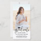 Teilen Sie die Freude an einer High School oder Uni-Abschluss und laden Sie Familie und Freunde ein, mit eleganten Foto Ankündigungen und Party Einladungen zu feiern. Das Bild und die Formulierung auf dieser Vorlage sind einfach zu personalisieren und die Farben lassen sich mit dem Zazzle Design Tool leicht ändern. Das moderne Schwarz-Weiß-Design besticht durch eine Mörtel-Kappe, trendige Skriptkalligraphie, elegante klassische Typografie und ein Foto Ihrer Wahl, wie z.B. ein Seniorenbild oder ein Bild aus der Anlaufzeremonie. Diese schicke, senkrechte Abschluss-Karte zum Herunterladen ist eine stilvolle Möglichkeit, einen besonderen Tag zu feiern. Herzlichen Glückwunsch an den Absolventen!