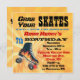 Mit der rauchenden Hot-Roller-Skaten-Geburtstagsfeier laden Sie zum Rock and Roller Skate ein. Ein schwarzer Roller-Skate mit Flammen auf einem sonnendurchfluteten Hintergrund mit transparenten Flammen. Handgezeichnete Abbildung von McBooboo.