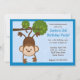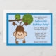 Laden Sie die Freunde Ihres Kindes zu ihrer nächsten Geburtstagsparty mit dieser anpassbaren Blue Affen Geburtstagsparty Einladung ein. Ein niedlicher Affe hängt von einem Baum-Ast.