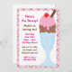 Laden Sie Familie und Freunde zu der nächsten Geburtstagsfeier Ihres Kindes mit diesen bezaubernden Eis-Geburtstagsfeiern ein. Mit einer Schokolade und Erdbeereissoda mit einer Kirsche oben. Passen Sie Ihre Foto- und Party-Daten an! Einige Elemente © Goodness and Fun