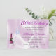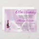 Schöne Geburtstagsfeier mit Grafik eines rosa satin aussehenden Hintergrunds. Eine Flasche Champagner und Glas auf der links Seite der Einladung, mit farbigen Bläschen, die sich erheben. Personalisieren Sie den gesamten Text so, dass er Ihren Bedürfnissen des Party entspricht. Sehr hübsche Einladung für ein Damen-Party.