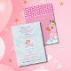 Hier ist ein niedliche Geburtstag Party laden mit einer rosa Gummiente mit einer Krone und extravagante Halskette und sitzen in Blasen. Aktualisieren Sie den Platzhaltertext mit der benutzerfreundlichen Vorlage. Der Rücken ist in Rosa und Weiß mit Polka-Punkten und der rosa Ente mit den Worten "eine besondere Einladung" koordiniert.