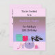 Eine unterhaltsame und stilvolle Einladung zu einer Fashion-Geburtstagsfeier. Ein sanfter rosa Hintergrund mit schattigem lila Einlauf und einer lustigen Zusammenstellung von Accessoires in hellen Farben. Passen Sie die Party-Informationen nach Bedarf an.