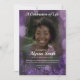 Einladung oder Ankündigung zur Beerdigung, Gedenkfeier oder Lebensfeier. Mit einem lila Blume-Overlay für ein Foto Ihrer Wahl.