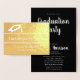 Auf der Vorderseite dieser Goldfolie befinden sich die Graduationskappe und die Worte 'Graduation Party'. Im Hintergrund ist schwarz, können Sie Ihre Nachricht mit den Details Ihrer Abschlussfeier personalisieren.