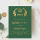 Smaragdgrüner Hintergrund Ein klassisches Imitat mit Goldlachkranz und einem Graduierungsmütze. Personalisieren Sie das Jahr, den Namen und die Details. Gelber Text. 1 Blatt = 1 Einladung mit Druckkante bis Kante.