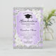 Einladung zur Graduationspartei. Enthält Streifen, Script-Schriftart, Rosen, Tassel und Konfetti. Elegantes lila Design mit Imitaten Glitzer Silber. Ideal für eine elegante glänzende Chic-Feier.