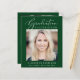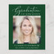 Elegante, preisgünstige Ankündigung und Party Einladung des grünen Abschlusses mit "Abschluss Celebration" in eleganter weißer Schrift und Typografie, dem Foto des Absolventen und ihrem Namen, Schule und Klassenjahr in schlichter moderner Typografie. Auf der Rückseite, fügen Sie ein weiteres Foto und die Graduierung Party Details.