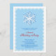 Dieses elegante Design ist ideal, um eine Firmen- oder Familienfeier zu feiern. Ein großer Schneeflocken auf blauem Hintergrund und eine Grenze mit winzigen Schneeflocken. Sauberes und stilvolles Design, ideal für Feiern der Ferienzeit im Stil. Fügen Sie Ihre eigene Formulierung hinzu.