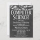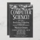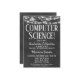 Eine lustige Schwarz-Weiß-Chalkboard Computer Science Graduation Party Einladung mit glühenden Lichtern an der Spitze.