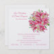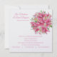 Diese Hochzeitseinladung wird auf einem weißen Perlenschimmer-Hintergrund mit modernem Layout gezeigt. Kunstdruck von rosa Blume. Text in rosa Farbe. Passen Sie dieses Element an, indem Sie den Beispieltext nehmen und stattdessen Ihre Informationen darin einfügen. Bild auf Lager.