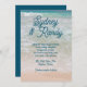 Hochzeitsfeiern am tropischen Meer für eine kleine lässige Angelegenheit. Meeresschaum am Ufer und türkisblaues Wasser in der Ferne, ist der Hintergrund für Ozeanblau modernen Drehtext. Die Namen der Braut und des Bräutigams sind in großen Buchstaben an der Spitze mit allen Zeremonieinformationen unten. Geben Sie Empfang-Informationen und UAWG, wenn Sie wählen. Das Gegenteil ist massiv blau. Diese Einladung kommt auch als Download, um digital zu teilen.
