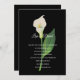 Diese romantische klassische Hochzeitseinladung wird in einer schwarzen Hintergrundfarbe mit einem schönen Cala Lily-Druck und einem formellen Layout und Text im Standarddruck mit Schriftzeichen gezeigt, die die Namen der Braut und des Bräutigam hervorheben. Passen Sie diese Hochzeitseinladung an, indem Sie auf den Knopf Anpassen klicken, suchen Sie rechts, um die Textfelder zu finden, ändern Sie den Text in den entsprechenden Feldern, um Ihre Informationen hinzuzufügen. <a href="https://www.zazzle.com/cardhunter?rf=238025322715007212" rel="nofollow">CardHunter</a>