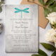 Beginnen Sie Ihre Gäste mit dieser Aquamarinen Drachenfliege-Hochzeitsfeier, die für Hochzeitsthemen der Libellenfliege erstellt wurde. Dieses exquisite Design besticht durch ein zartes Libellenfliege-Set vor einem texturierten Hintergrund, das elegante Schrift und moderne Typografie für eine anspruchsvolle Touch kombiniert. Ideal für Braut und Bräutigam, die einfache Anordnung hebt Ihre Hochzeitsdetails schön hervor. Diese auf hochwertigen, Öko-freundlichen Karotten gedruckte Einladung eignet sich ideal für Libellenhochzeit. Ideal für Paare, die ein Libelle-Hochzeitsthema haben.