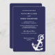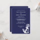 Dieses moderne und elegante Design verfügt über einen soliden marineblauen Hintergrund und einen nautischen Anker und Seil an der unteren Ecke. Diese Karte ist ideal für Hochzeiten mit einem Wassersport-Thema, einer Hochzeit in Urlaubsort oder einer Strandhochzeit.