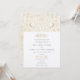 Diese exquisite Hochzeitseinladung verbindet die faszinierende Schönheit des Viktorianischen Designs mit der eleganten Schrift der islamischen Kunst. Die Vorderseite weist ein symmetrisches Viktorianisches Blumenmuster in Gold auf, das mit einem Paar Liebesvögel besticht, wobei jeder eine Initiale aus den Namen des Ehepaares trägt. Das Interieur der Einladung zeigt eine harmonische Mischung aus traditioneller englischer und arabischer Kalligraphie und lädt die Gäste zur Feier der Gewerkschaft ein. Die Einladungsdetails sind Set vor einem strukturierten, weißen Hintergrund, der die Lesbarkeit des Textes erhöht, während die goldenen Gestaltungselemente mit dem Reichtum beider Kulturen übereinstimmen. Diese Einladung ist ein schönes Zeugnis einer Hochzeit, die kulturelle Fusion mit Anmut und Stil umfasst.
