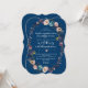 Elegante, zarte, staubblaue, misige Rose Aquarellfarben-Blume auf marineblau-blauem Hintergrund, handgeschriebene Typografie; auf der Rückseite auch marineblau. Eine großartige Wahl für alle Jahreszeiten Hochzeiten, vor allem für Herbst oder Winterhochzeiten. Verwenden Sie das Tool Anpassen, um Ihre Informationen hinzuzufügen und die Schriftart zu ändern. Für passende Artikel besuchen Sie bitte meine Dusty Blue Misty Rose Blume Collection.