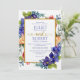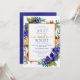 Aquarellfarbene Blumenstruktur mit tiefblauen/violetten Blumen, ergänzt durch rote Blume mit glänzenden Goldrahmen. Kompliment Goldene Schrift "und" mit Herzen, um Ihre Gewerkschaft zu betonen. Tief lila Rückseite. Alle Typen sind anpassbar.