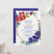 Aquarellfarbene Blumenstruktur mit tiefblauen/violetten Blumen, ergänzt durch rote Blume mit goldfarbenem ovalem Rahmen. Tief lila Rückseite mit roten Blume. Alle Typen sind anpassbar.