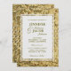 Diese romantisch aussehende goldene Folge Hochzeitseinladung sieht charmant und elegant vor dem weißen Hintergrund aus.