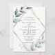 Einladung zur Hochzeit | Grayed Jade Green Botanical - Variationen von Grayed Jade Green - mattierte grüne Blätter oben und unten über terrarium Stil Goldrahmen, ein Imitat handgefertigt Papier Textur in einem sehr leichten Jade grünen Ton auf der Rückseite. Frisch und einfach - aber köstlich elegant. Dies ist Teil einer vom BarefootBride™ entwickelten, designkoordinierten Hochzeitssuite-Kollektion. Verfügt über einen einfachen klassischen Textstil (der geändert werden kann, wenn Sie nur Klicken Sie auf Diese Vorlage personalisieren, dann im Dropdown-Menü klicken Sie auf Klicken, um weitere Anpassungen vorzunehmen - hier können Sie den Schriftart und die Textfarben ändern)